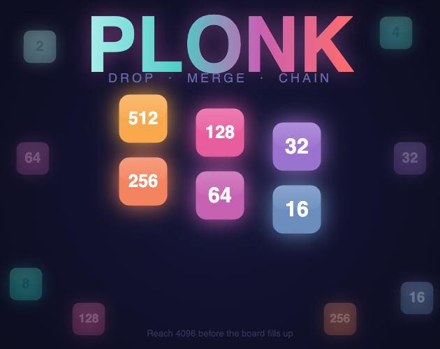 PLONK is a falling domino puzzle where merging tiles trigger chain reactions.